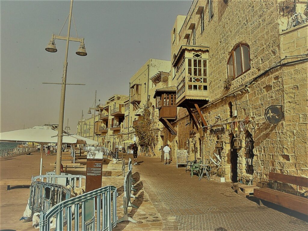 Il piccolo borgo in stile ottomano affacciato sul porto era infatti attorniato da piantagioni di sesamo, cotone e agrumeti. Oggi Giaffa è simbolo di un lungo passato di dominazione ottomana, simboleggiata dai konak e dai minareti, e, per ora, di sincretismo religioso, se si considera il monastero di San Pietro esattamente nella piazza centrale. Sebbene parte la comunità ebraica risiedesse qui fin dal 1840, solo da fine Ottocento iniziarono ad approdare al porto di Giaffa le navi cariche dei primi sionisti.