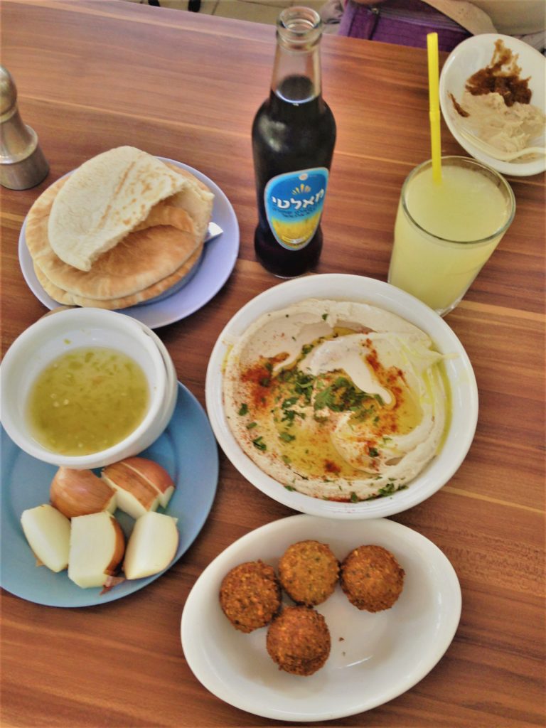Tuttavia, è la vita della Giaffa nuova a colpirmi, fuori dalle mura della vecchia Kasba, dove risiedono in maggioranza gli arabi musulmani di Tel Aviv. Basta scendere nella downtown di Giaffa per incontrare la comunità musulmana che qui si è concentrata (ghettizzata?) a partire dai conflitti di metà Novecento. Confesso di essermi addentrata in questo ampio quartiere a sé stante solo per scovare il rinomato “Abu Hasan”, il locale di falafel e hummus migliore di Giaffa. Qui ho assaggiato tre varietà di hummus, di ceci, di fagioli e piccante. I prezzi diminuiscono visibilmente rispetto al centro città, diventa ora difficile vedere donne non accompagnate sedere al bar o esibire il capo. C’è qualcosa di profondamente utopico nella quotidianità di Giaffa nuova. Le scritte amministrative sono in ebraico, le insegne, i locali e i manifesti sono in arabo. Ho sentito in queste strade per la prima volta a Tel Aviv il richiamo alla preghiera del muezzin, proprio mentre incontravo due ragazze soldato israeliane che riposavano dall’attività in caserma, dietro la moschea. 18 e 21 anni, stavano entrambe “scontando” il servizio militare della durata di tre anni, conditio sine qua non avrebbero potuto accedere all’università, mi raccontavano.