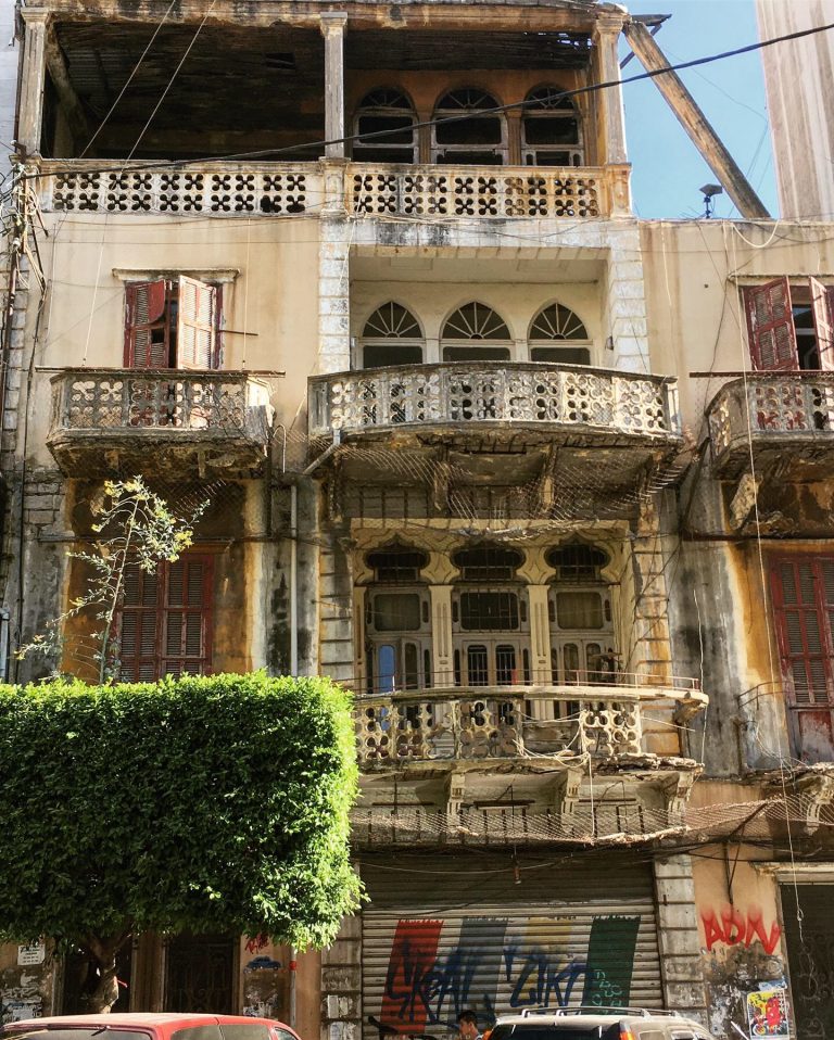 In quel frangente Mary azzeccò in pieno la nostra destinazione, si trattava del Saifi Urban Garden* di Achrafieh, uno dei pochi complessi abitativi d’epoca coloniale sopravvissuti alle guerre, oggi raggruppati in una serie di appartamenti, dormitori femminili e maschili, una scuola di arabo, il Cafè em Nazim, uno spazio bohemien dove avremmo fatto colazione il mattino e assistito a concerti di musica dal vivo la sera, e il rooftop bar Coup d’Etat al sesto piano (senza ascensore). Mary aveva vissuto sei mesi a Yerevan, e condiviso l’appartamento con un armeno libanese che ci aveva indicato questa soluzione. Non ero mai stata propensa alla vita d’ostello, tanto meno in un paese di cui non conoscevo nulla. Ma mi sarei presto ricreduta. Dopo una veloce registrazione, ci intrufolammo nel nostro dormitorio di soppiatto. La notte libanese era calda e afosa, il calore della cocente giornata trascorsa si mischiava al profumo della shisha, che ancora aleggiava nell’aria. In camera era terribilmente gelido, le nostre inquiline irlandesi erano probabilmente avvezze ad altre temperature e si congelavano con l’aria condizionata. Erano due letti a castello, scalai la mia montagna, spensi il condizionatore, e piombai in un sonno profondo.