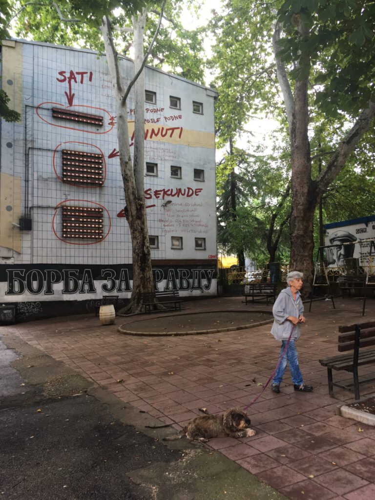 Faccio un parcheggio raffazzonato con le quattro frecce. Pioggia a catinelle. Mi inzuppo per ordinare al Fabrika di Podgorica (Montenegro)un caffè take away prima del lungo viaggio che mi riporterà a Pristina
