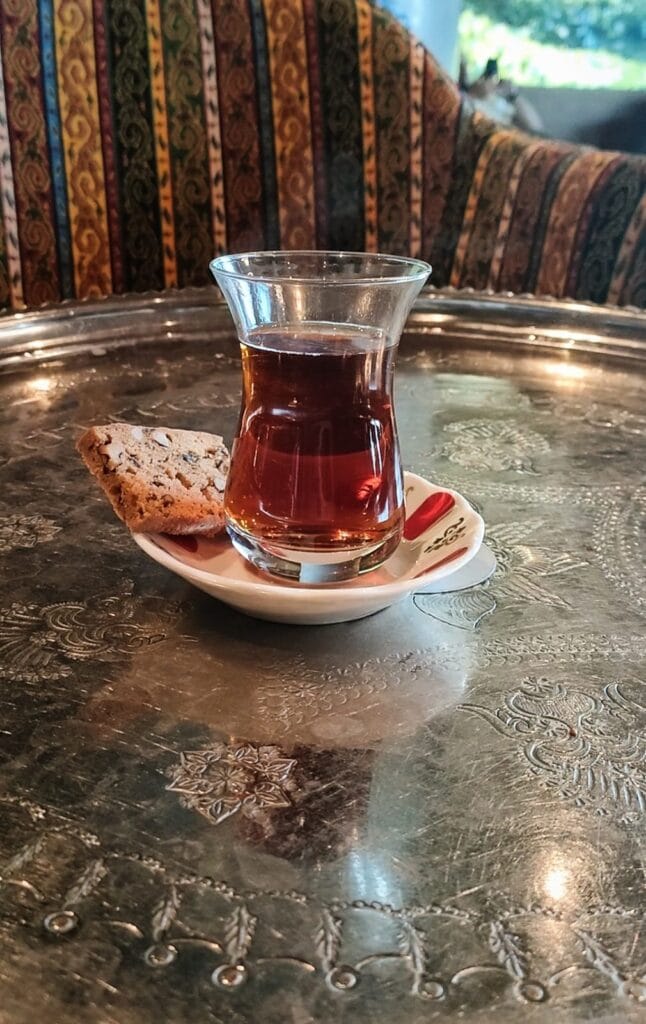 Ho lo stomaco distrutto, dalla teina, dalla fame, dal livello di attenzione che mi impongo di avere per non disattendere alla risposta di nemmeno una battuta di quelle che ascolto. Sono sempre di fronte a tre signori, sedicenti ottomani, che cercano di valutare se o come fregare una giovane donna non musulmana che pensa di poter condurre la conversazione come le pare. In realtà mi sono pure divertita, sembrava di stare a chiacchierare in un bazar.