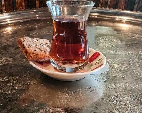 Every day five o’clock tea is served on the deck, here in the Nile motor ship. Greeks chat until evening time, Italians sunbathe in their bikini, even some Germans pop up, otherwise