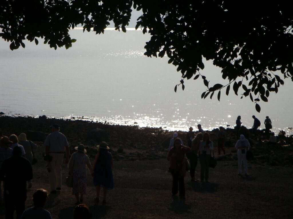 Emptied of their religious significance, the sacred places of Galilee are packaged into kitsch and aseptic shrines, destined to host huge crowds of worshippers from all over the world who feed a well-established tourist business machine. The only way to experience their sacredness is to escape the masses of the faithful, where the solitude and silence of these untamed, wild and evocative lands reign. Lake Tiberias, 200 m below sea level, early in the morning, blazing in the sun, is all this. I have the opportunity to witness it during a visit to the Basilica of the Primacy, erected in memory of the Gospel episode of the distribution of the loaves and fishes. It is perhaps one of the few episodes I remember hearing from the years I was sent to catechism. The blinding light emanating from the morning sun spreads all around, filtering through the mist, reflecting in the shimmering waters of Lake Tiberias. I am suspended. At 9 a.m. it is already almost 30 degrees, and the shores of the lake are decorated with the glow of a few bathers. They are my travelling companions in this floating paradise. This is perhaps faith. Not the architectural container used for worship, but the transcendental wonder of nature that seizes me on such an ordinary, if seemingly timeless, morning. Who knows, perhaps at some unspecified time in the past, a prophet witnessed the same muffled morning dawns in the company of some disciples at the foot of the Mount of Beatitudes.