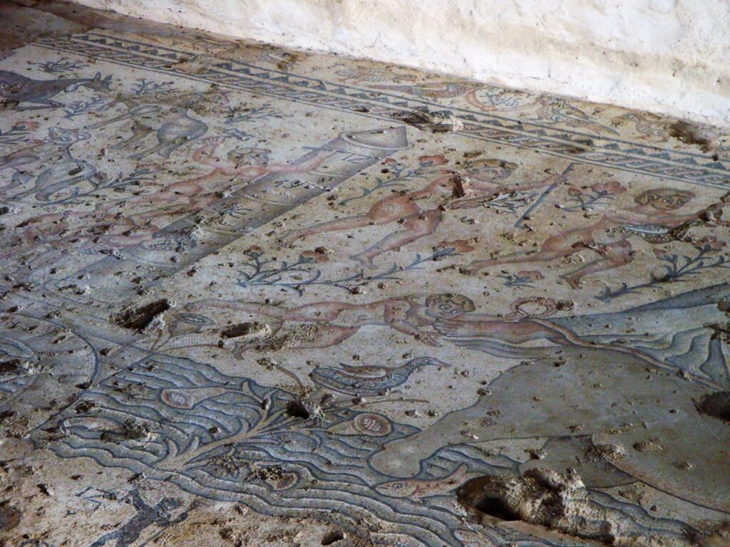 Excavations at the archaeological site were carried out by the University of Turin, which uncovered remains dating back to the 4th century BC. The history and architecture of this ancient city reproduce Hellenistic, Jewish, Roman, Byzantine, Islamic, Crusader and Ottoman influences. Among the notable structures we find a Roman theatre, two early Christian churches, a Crusader fortress (later passed into Ottoman and British hands), and forty wonderful mosaics. All abandoned as lonely remnants of past greatness. The only site in operation today is an ancient synagogue, where we attend a bar mitzvah, the religious celebration through which young Jews receive the laws of the Torah and enter adulthood (at 13 for boys, at1 12 for girls).