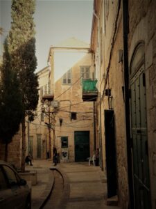 I write by the outmoded window of my cell. The view is of downtown Nazareth, a carpet of lights in the distance inhabited by the Muslim community. I sleep on the hillside, where Jews and Catholics live. I can hear Shabbat celebrations in the distance, it is a Friday night in October, and the scent of summer is still intoxicating.