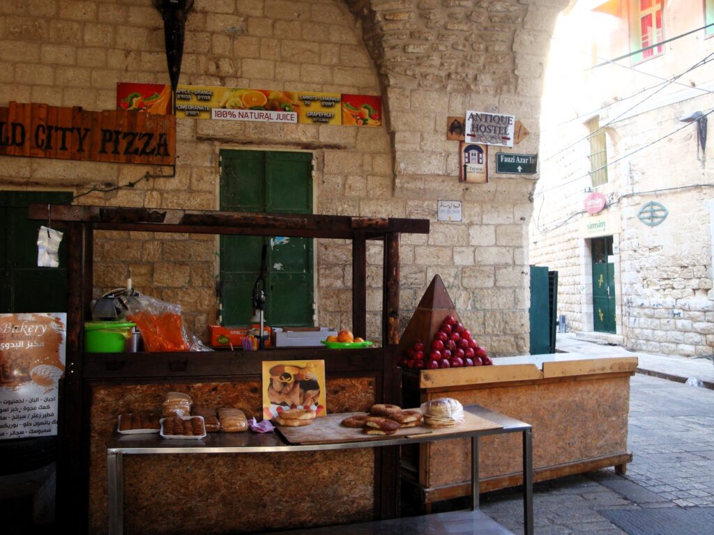 The centre of Nazareth enshrines the elegant and imposing buildings of the British Mandate, which line the gradually more intricate lanes of the old city, where rudimentary bakeries and street vendors of dates, figs and corn on the cob abound near the Palestinian-run covered market. Here is the White Mosque, a hotbed of Muslim strife and resistance in the city’s tumultuous past, right behind one of the caves where Jesus is said to have preached. To access it, one has to wade through ibrik (Middle Eastern coffee pot) vendors and souvenirs of all sorts, which I only manage to distract by mentioning Koko Asayan, an Armenian singer-songwriter revered in the Middle Eastern community and apparently by the entire Nazareth covered market, who broadcasts it non-stop from loudspeakers. Further on, the Basilica of the Annunciation gathers masses of worshippers who line up to visit the famous Annunciation grotto. The young Basilica (1969) is part of a remarkable monumental complex and is now the city’s landmark, visible from almost every corner of the city, and the focus of the main tourist industry.