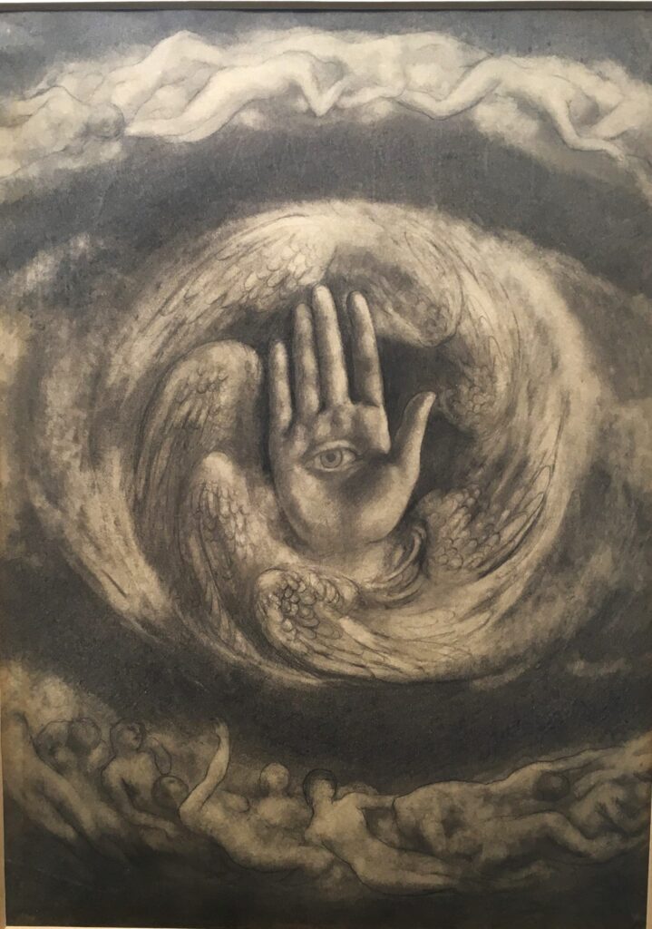 Da queste parti, in una giornata limpida e raffrescata dalla brezza di montagna, incontrammo la tomba-museo di Khalil Gibran. Proprio in mezzo a questi boschi lui stesso chiese alle sorelle di essere sepolto, dopo una vita di esilio. Il museo racchiudeva una raccolta dei suoi scritti e delle sue principali opere iconografiche, di cui voglio ricordarne uno in particolare “Il mondo divino”. Mari mi aveva raccontato che il suo coinquilino aveva affisso proprio sulla soglia dell’entrata di casa a Yerevan quest’immagine, e che prima di uscire ogni volta schiaffava il cinque a quell’occhione a centro palmo. Sembrava un soggetto di Salvador Dalì. Mi sarebbe poi stato spiegato che quell’opera, “il terzo occhio”, rappresentava il terzo occhio invisibile di cui l’uomo dispone una volta raggiunta la propria consapevolezza spirituale, iniziando a vedere le cose da una diversa prospettiva o riuscendo a scorgere ciò che prima risultava ineffabile.. L’evoluzione personale è semplicemente l’aumento della sensibilità, fino al punto in cui nulla più si frappone tra l’individuo e la realtà, e si arriva a concepirla nella sua totalità. Questo è possibile perché l’individuo è immanente alla materia e a Dio, ed ha perciò tutte le risorse per comprendere perfino il momento più alto della spiritualità. La Vita è tutto quello che c’è e non necessita di intermediari per essere compresa, un punto di vista del tutto anticlericale. Per questo Gibran afferma che Dio è qui, proprio ora. Il pensiero di questo grande intellettuale è un seducente miscuglio di misticismo e pragmatismo, di evoluzionismo e vitalismo, di cristianesimo e panteismo, di Occidente e Oriente. La morbida dolcezza dei suoi versi e l’armoniosità del loro ritmo trasportano il lettore in una sorta di paradiso a buon mercato, dove tutto è suadente, scintillante, rassicurante, proprio come la sua stessa idea di trasmigrazione dell’anima, e il fatto stesso che Dio si evolva e prescinda da noi, senza dettarci alcuna regola. Non è forse lui stesso figlio della nostra stessa costruzione?