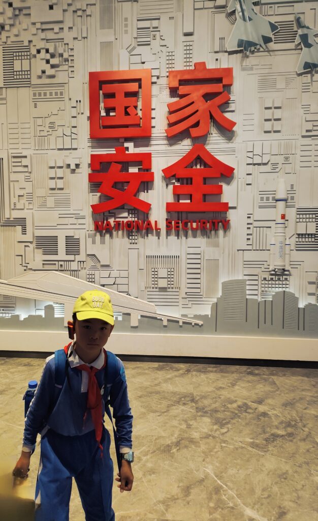Un’immensa bandiera cinese campeggiava all’interno di quest’edificio imponente e futuristico. I branchi di scolaresche in divisa sembravano dei puntini se misurati in scala a questa bandiera rosso fuoco. Le divise dei bambini sono identiche in tutte le scuole di Shenzen, bluette e bianche. Osservavo il giorno prima una scuola elementare anche nella downtown, cogliendone la particolare passione per l’attività fisica e soprattutto per il salto della corda in cortile. I bimbi cinesi sono gli unici con cui riesco a comunicare in inglese, li seguo nel museo per osservare su cosa si soffermano, da cosa vengono attratti. Trattandosi di un museo in gran parte interattivo, noto di tanto in tanto la compulsione e la prontezza con cui rispondono agli stimoli degli schermi.