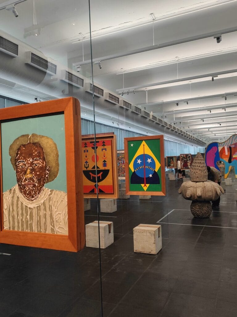 Tuttavia, la furia progressista di San Paolo continuava a esprimersi, palesandosi ancora una volta nelle architetture della città, nella stratificazione di genti, stili, tendenze. San Paolo non è solo la città dell’elitismo, del fashion, del fine dining, del glamour, dell’Ibirapuera di Oscar Nyemer, di Aryton Senna, di Lula da Silva che qui fondò il Partito do Trabalhadores, di cui è tutt’ora alla guida. Per cogliere l’energia di San Paolo bisogna passeggiare per l’Avenida Paulista la domenica mattina, quando il Corso si fa tutto pedonale e affollato da flash mob, mercatini delle pulci, corsi di spinning, venditori di noci di cocco, di fronte a un confusionario e stimolante affiancamento di stili in cui spicca il MASP, il museo d’arte classica e contemporanea più importante del Sudamerica. “Il tempo lineare è un’invenzione dell’Occidente: il tempo non è lineare, è un meraviglioso accavallarsi per cui, in qualsiasi istante, è possibile selezionare punti e inventare soluzioni, senza inizio né fine”.Parole di Lina Bo Bardi, comunista italiana formatasi nello studio milanese di Gio Ponti, divenendo poi  architetto del MASP. Lo completò nel 1968 con l’intento di imporre una sorpresa orizzontale al continuum verticale dei grattacieli, al fine di creare un “vano libero”, una pausa, un silenzio di un luogo di cultura dove arte, uomini e museo fossero sullo stesso piano. Lo fondò con Pietro Bardi, critico d’arte e gallerista vicino al regime fascista, il quale lasciò la penisola in seguito alla caduta del duce e sposò poi Lina. Con l’attrice Nydia Licia, ebrea triestina fuggita in Brasile dalle leggi razziali, e Assis Chateubriand, magnate della comunicazone brasiliana, si dedicarono alla vita del Masp per il resto della loro vita nelle Americhe. Dalla finestra del Masp continuo a respirare l’energia della città, che ritrovo solo nelle opere colorate, destrutturate, fallaci della meravigliosa arte figurativa brasiliana, spesso ispirata ai colori e agli abitanti della foresta amazzonica. Viene data grande rilevanza all’arte femminile, così come in strada assisto a un corteo femminista e lgbt+, in linea con la retorica anti-machista e gender friendly che ho trovato anche a Rio. Vorrei saprerne di più, se questa è davvero una tematica brutalmente sentita a livello bipartisan, o se è una sorta di revanche nei confronti di quel Bolsonaro che se l’è squagliata in Florida alla sconfitta delle ultime elezioni.