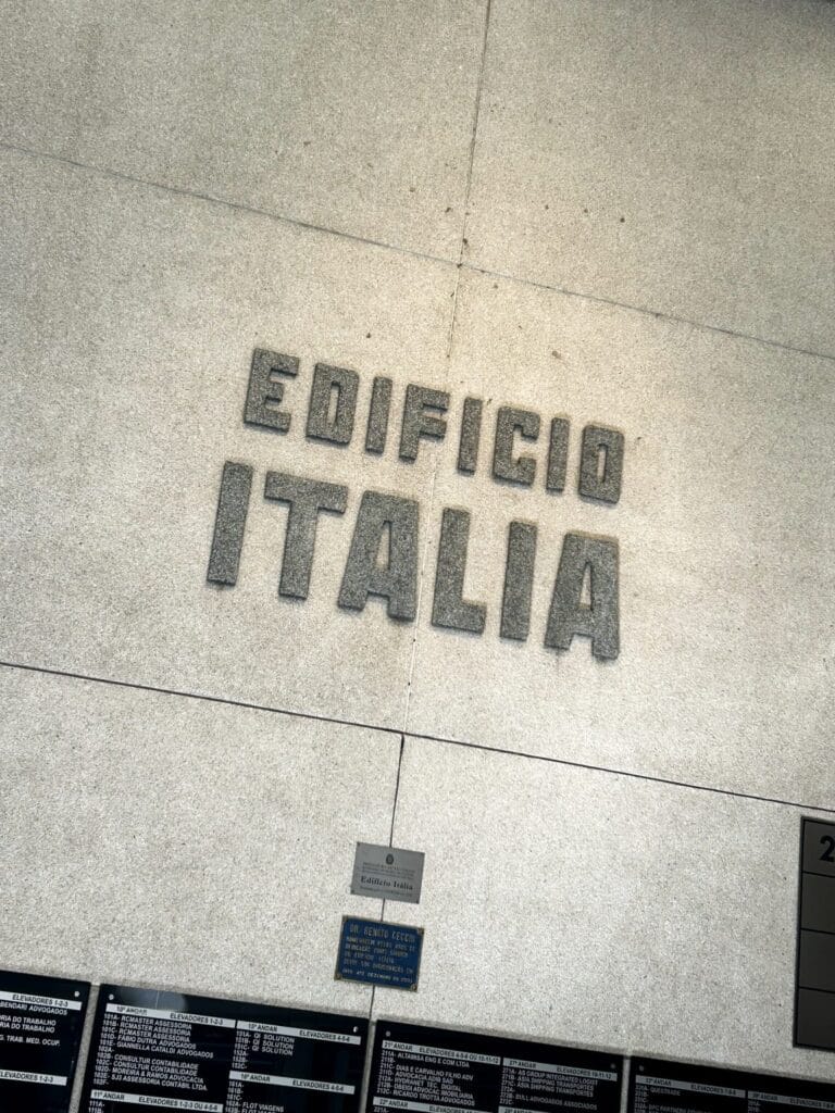 “Ubi italicus ibi Italia”, è la scritta che accoglie tutti coloro che accedono al Circolo italiano di San Paolo presso l’Edificio Italia. La colazione del sabato mattina è il momento giusto per imbattersi negli “italiani che hanno deciso di restare”, in molti, riunendosi abitualmente in questo spazio arredato in stile milanese liberty, tra oggetti ispirati ai colori del tricolore e stampe vintage dell’aperitivo Campari e Aperol Spritz. Da sempre demandato alla gestione dell’intellettualità della colonia italiana, Il Cicolo italiano è stato un luogo di affiliazione, di riunioni massoniche e spesso di contestazione, nel 1924 fu accolto proprio qui l’Ambasciatore Attolico al suon di “Viva Matteotti”! Tuttavia, per quanto la lobby italiana in Brasile abbia e continui a rappresentare le correnti politiche del Belpaese in maniera tutt’altro che monocolore, presso la Terrazza Italia all’ultimo piano dell’omonimo grattacielo è possibile appianare ogni divergenza, in una cornice d’alta cucina che fornisce il migliore panorama a 360° in città.  Più informale è stato fin dall’origine in ritrovo italiano presso il Caffè Girondino, poco distante dalla Praca da Se, dove sta la Cattedrale. Qui gli italianinhos hanno sempre consumato il famoso cafezinho paulista, sebbene oggi le coffee roasteries modaiole della Oscar Frere offrano degustazioni di grani del Minas Gerais a dell’Estato do Sao Paolo ai palati più sofisticati negli spazi industrial chic dei torrefattori Santo Grao e Suplicy.