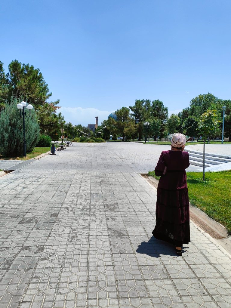 Tuttavia, Samarcanda non è Tashkent, e non è solo perché al suono del suo nome l’Oriente ti pervade. E’perchè, preceduta dalla sua fama, nonostante si stia ora aprendo al turismo internazionale, la città rimane ancora molto tradizionale, quasi priva di locali di matrice estera, con gli abitanti abbigliati in maniera tradizionale, chevrolet scassate e statue che celebrano, in maniera molto asiatica, il culto della personalità. In una rotonda vi è la statua di Tamerlano, più avanti la gigantesca statua dedicata al Islom Karimov, nato e cresciuto a Samarcanda, ex satrapo reggente della Repubblica URSS, cooptato a primo presidente della Repubblica Uzbeka dopo la dissoluzione del gigante sovietico, scomparso nel 2016. Ha lasciato una legacy controversa, tra risentimento e nostalgia.