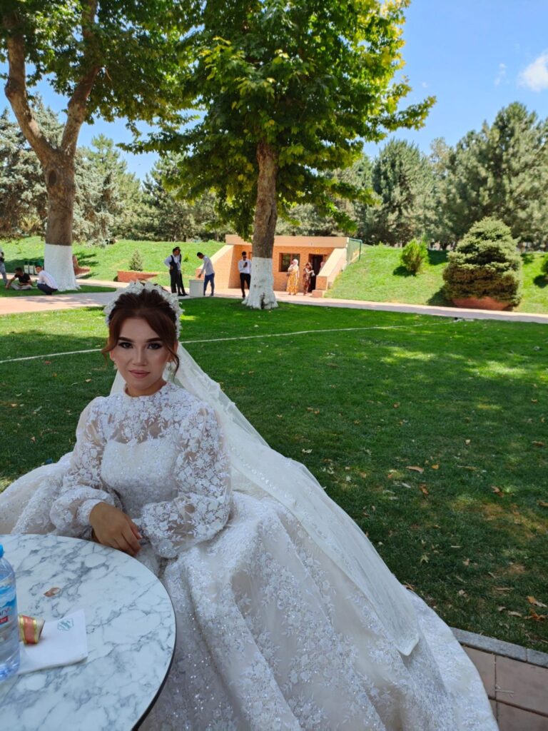 Arrivo al cospetto del Palazzo del Registan, uno scenario stupefacente che si staglia su una grande spianata. E’ qui che il mio autista aveva conosciuto Carlo d’Inghilterra, quando in visita istituzionale, circa vent’anni fa, si era soffermato a chiacchierare con i venditori di tappeti che lavoravano proprio al bazar dell’omonimo palazzo. “E’ per quello che poi sono andato in Uk, quell’incontro mi segnò, lo presi come un segno del destino. Aaargh lascia stare quel bambino mai cresciuto di suo figlio, Harry!”. Il Registan è una piazza simbolica per gli uzbeki, qua a e là ci sono servizi fotografici di coppie felici, le spose vestono abiti molto scenografici, sembrano delle Madame Thussauds!