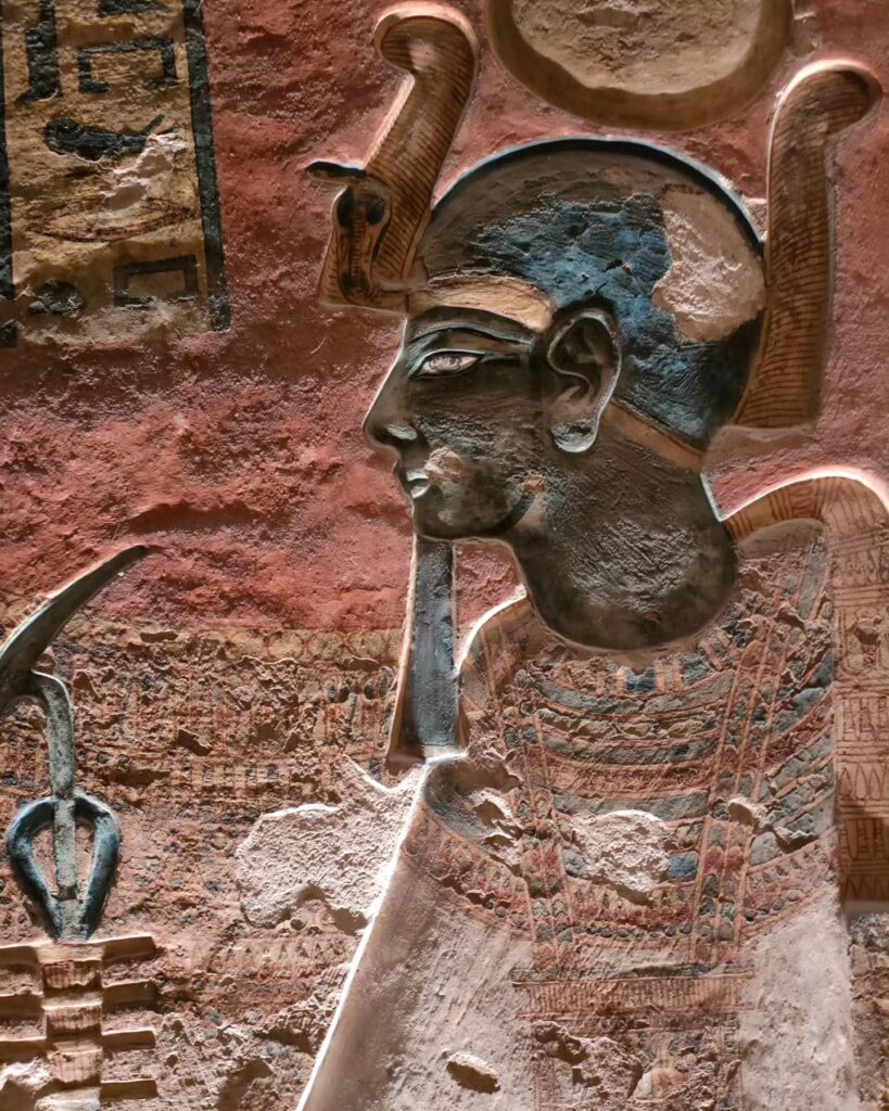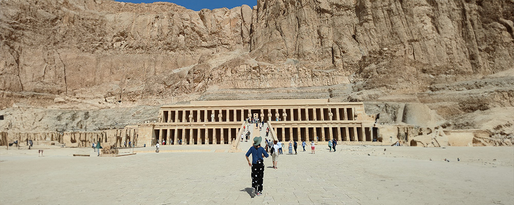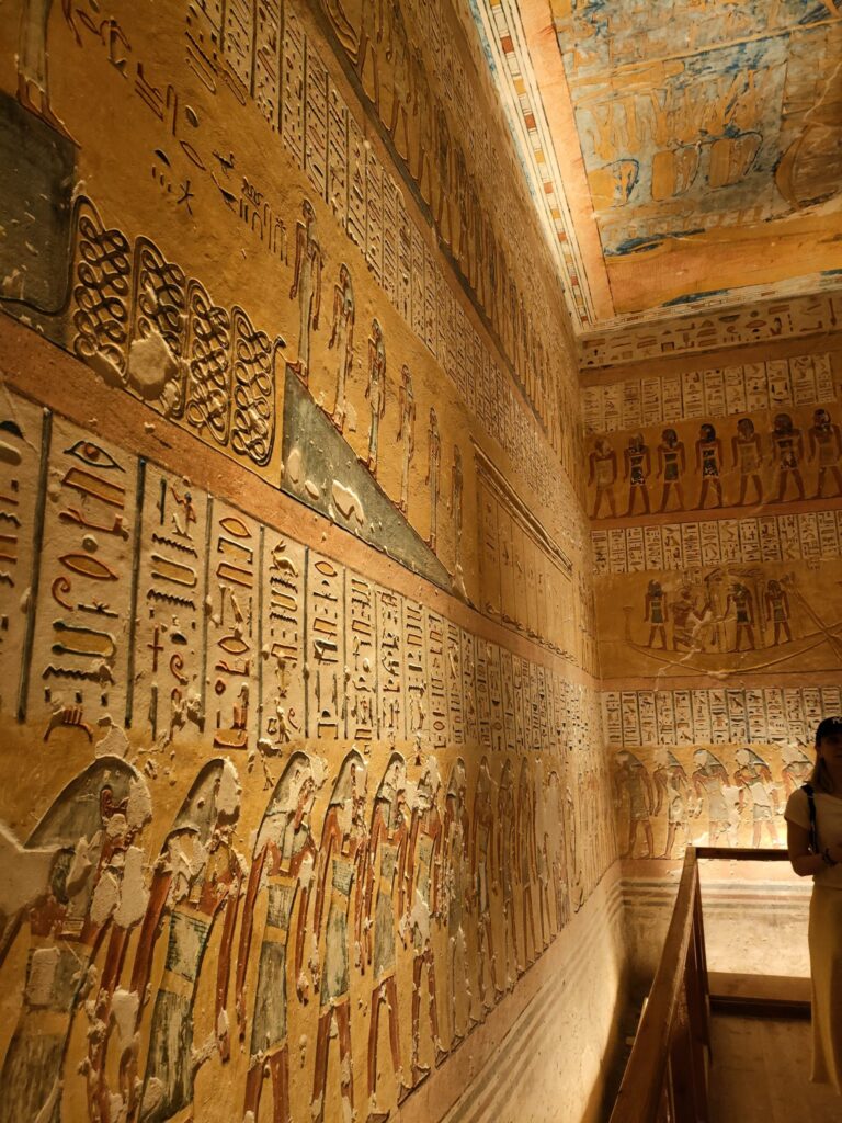 Arrivati all’imbarcadero, gli egiziani avevano allestito un buffet di panini e frutta per i nuovi passeggeri, nel cuore della notte. Poche ore dopo eravamo sulla riva occidentale del Basso Nilo, laddove tramonta il sole, e così anche le anime dei faraoni d’Egitto, ivi sepolti. Egittologi, archeologi, sciacalli di opere d’arte hanno rinvenuto circa sessantacinque di queste monumentali tombe ipogee tra l’Otto e il Novecento, quando l’Egitto Ottomano, ancora nel suo noncurante torpore, ignorava il suo magnificente passato. Se nel nostro immaginario la scoperta dell’intatta tomba di Tutankhamon (1922) ha contribuito ad avvolgere nella leggenda la storia di questa civiltà millenaria, io mi chiedo quanti tesori e scoperte rimangano silenti e sepolte nelle sabbie del deserto, forse per l’eternità, come evocato dall’affascinante simbologia della “chiave della vita”. Chiavi, scarabei, falchi, sciacalli e papiri.. gli Egizi affidavano al mondo dei Morti i loro divini sovrani, conservando i loro organi in vasi canopi, confidando nella protezione degli animali sacri, gli stessi che abitavano la fertile regione del Nilo, dove l’acqua donava la vita, il grano, la ricchezza dell’impero egiziano. Che ne resta oggi del granaio egizio? Si rivolterebbe nel suo sarcofago la regina Hatshepsut, la prima sovrana dell’antico Egitto a regnare come un uomo, con la piena autorità del faraone. La stessa che, facendosi comunque rappresentare come un sovrano maschile, aveva sovvertito la rigida patrilinearità del potere, consacrandosi alla memoria dei tempi nel suo tempio gigantesco, smorzato oggi da un inglorioso restauro polacco.