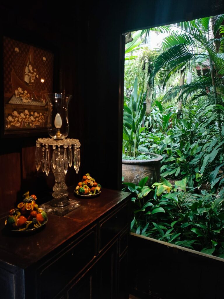 Il the Oss bar è la metafora di un uomo, Jim Thompson, il farang più enigmatico, iconico, memorabile della “città degli angeli”. Costui sbarcò ad Algeri tramite l’Operazione Torch, nel giugno del 1943, per preparare lo sbarco in Sicilia. Già reclutato dall’intelligence americana in tempo di guerra, nel gennaio del ‘45 si spostò nel teatro del conflitto indo-birmano fino a quando i giapponesi non si arresero. In seguito Jim, con il suo rayban wayfarer, si unì al movimento di liberazione thailandese giungendo nella capitale il giorno di ferragosto del 45. Non lasciò mai più la Thailandia, divenne un attachè presso l’Ambasciata americana di Bangkok, fino a quando lasciò l’incarico per rimanere nel Siam in veste ufficiale di businessman. Il principe dei farang sopraffini è lui, occidentale, faccendiere, vizioso, perspicace, multiforme, astuto, irresistibilmente imperscrutabile. Proprio come la sua dimora, che ho appena finito di visitare: un’accozzaglia di oggetti e delizie architettoniche adombrate dalla natura tropicale, che cresce rigogliosa ai piedi dei grattacieli della metropoli chiassosa, inquinata, umida e maleodorante.
